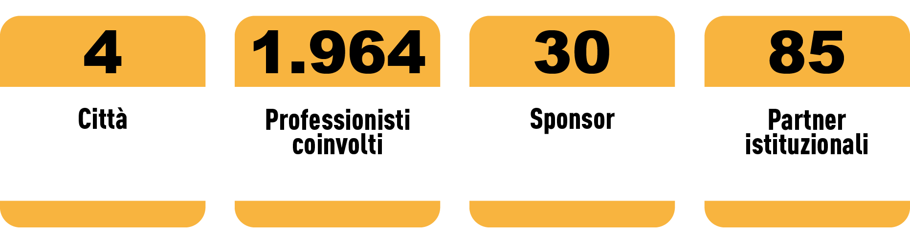 Ogni evento sul territorio è strettamente connesso a SAIE Bologna: le analisi tecniche locali diventano la base per un confronto nazionale, con stessi temi, stessi ambiti di intervento e un’unica narrazione che accompagna contenuti, relazioni e soluzioni dal territorio alla fiera.